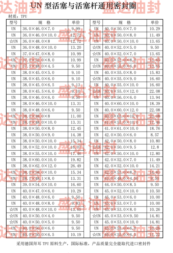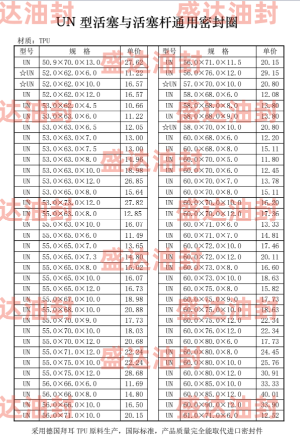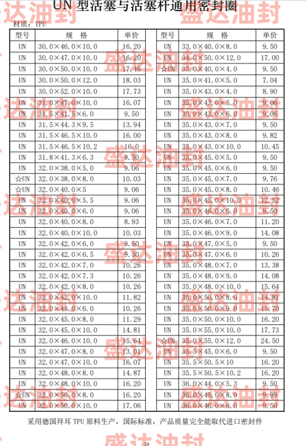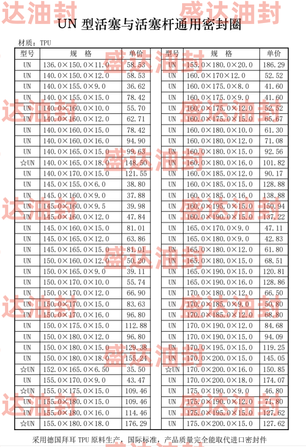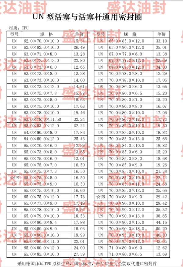 UN型密封圈是单向作用的密封元件,在液压缸中,主要用于活塞杆密封,在很多种应用场合,特别是在行走机械、汽车、林业和采矿机械中,在恶劣的工作条件下,具有良好的机械特性。在重载场合,它与RS型斯特封联合使用具有非常好的效果。